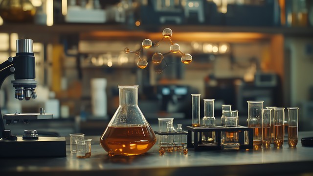一幅石油的化学结构图,与实验室设备相结合,展现科学的魅力。