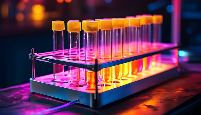 色彩斑斓的试管架,上面排放着各色液体,营造出神秘实验室的氛围。
