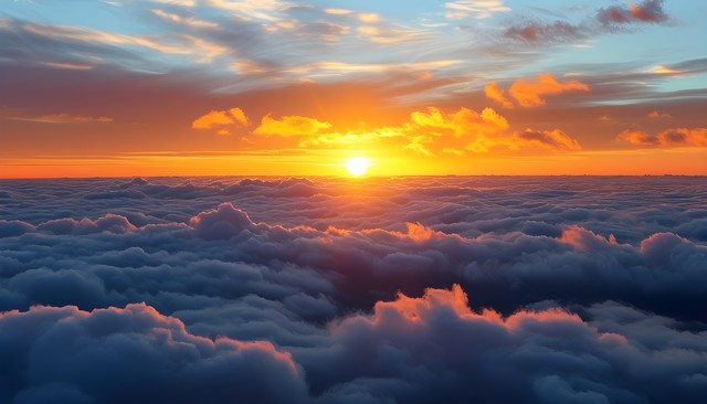 日出时分,阳光穿透云层,照亮绚丽的天空,展现壮观的自然景象。