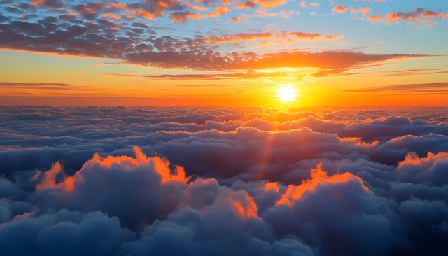 日出时分,阳光穿透云层,照亮绚丽的天空,展现壮观的自然景象。