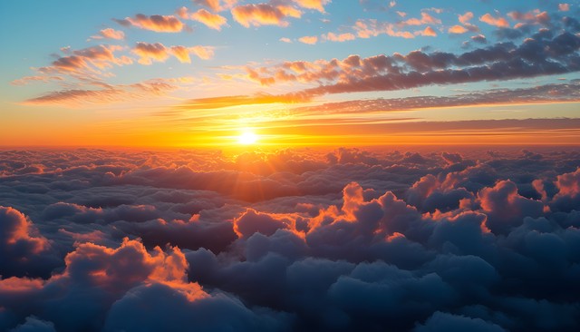 日出时分,阳光穿透云层,照亮绚丽的天空,展现壮观的自然景象。