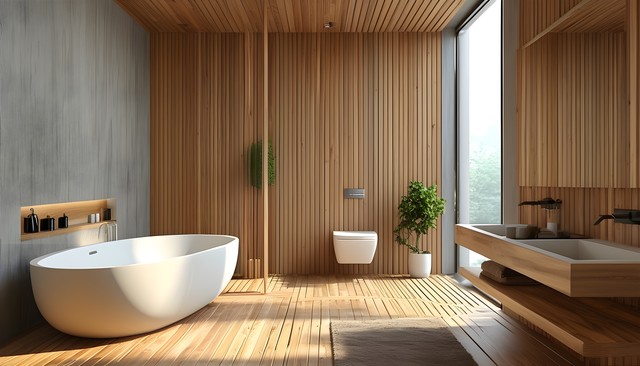 现代简约风格的木质浴室设计,具有干净的线条和自然元素。