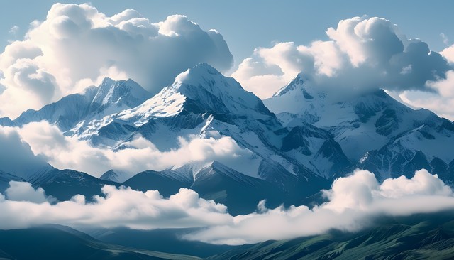 雪山与云朵交织的壮丽景观,展现大自然的雄伟。