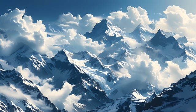 雪山与云朵交织的壮丽景观,展现大自然的雄伟。