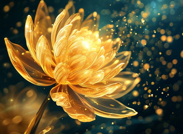 数字技术金莲花与闪闪发光的花瓣抽象图形