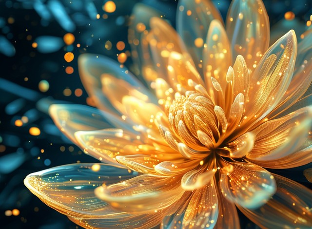 数字技术金莲花与闪闪发光的花瓣抽象图形