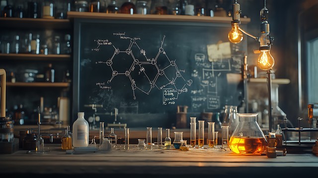 一幅石油的化学结构图,与实验室设备相结合,展现科学的魅力。