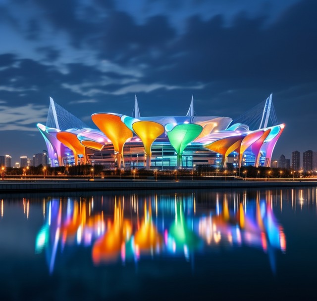 夜幕下的天津奥体中心三滴水