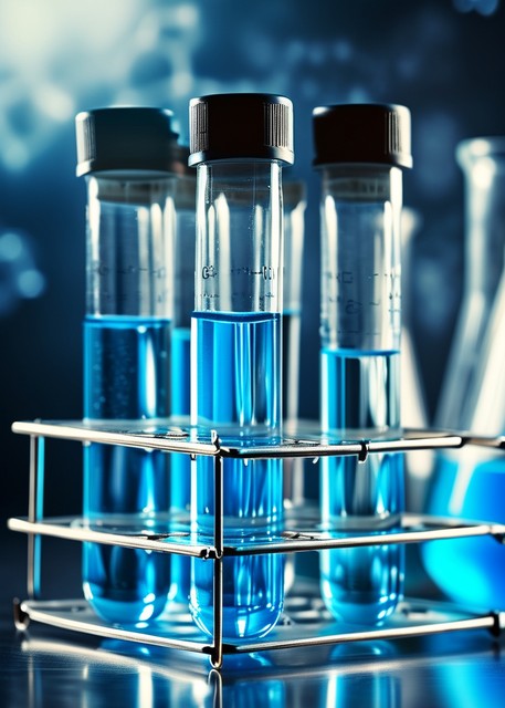 玻璃试管装着蓝色液体用于化学实验