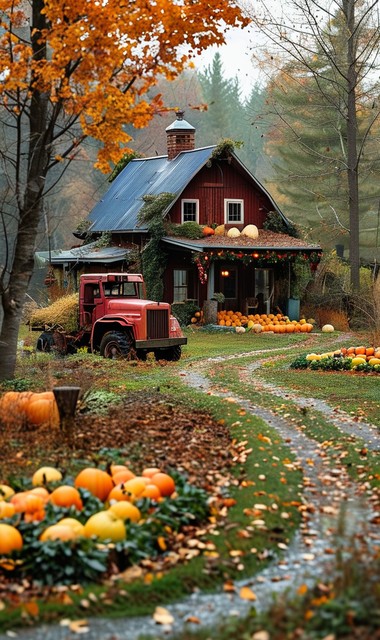 幼稚的秋天小屋建筑,农用车,自然元素孤立的收获村节日集