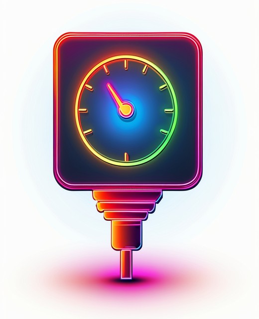 发光霓虹灯线数字测速仪图标孤立在白色背景。全球网络高速连接数据速率技术。黑色方形按钮。矢量