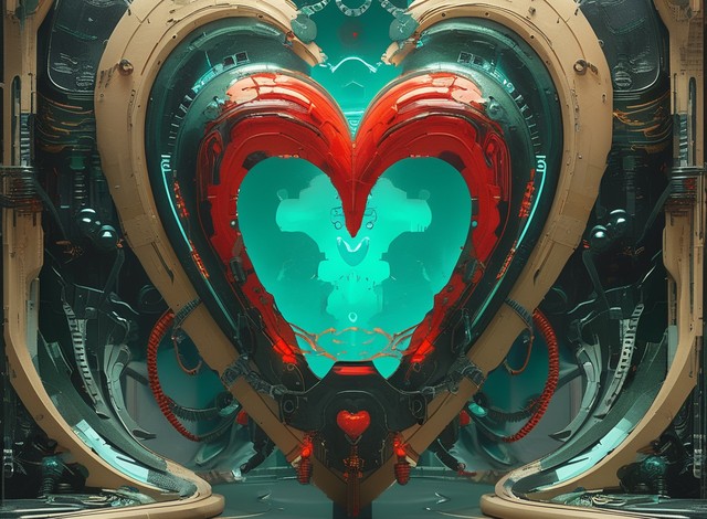 文字写作文本科幻。商业概念为幻想娱乐类型未来主义奇幻冒险绿松石笔记想法黑色字母红色文字心脏框架米色背