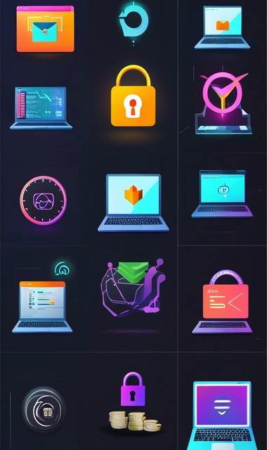 设置非同质化代币数字加密艺术、网络安全、加密货币钱包、带商店应用程序的笔记本电脑、文档、锁和图标。矢
