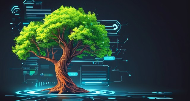树技术标志模板。创新的数字技术概念商业图标。矢量插图。
