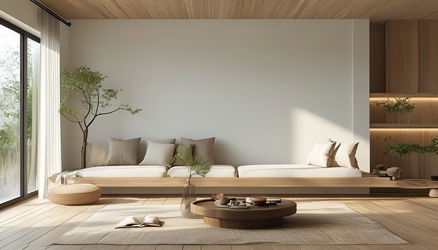 简约舒适的客厅设计,带有自然元素的装饰与柔和的光线。