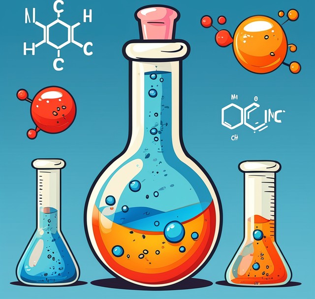 漫画风格的矢量卡通化学试管图标。实验室玻璃器皿标志插图象形图。烧瓶商业飞溅效果概念。