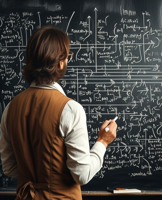 专家背对着黑板,手里拿着粉笔,用字如行云如流水,讲解着复杂的理论知识