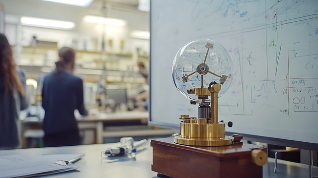 陀螺仪在实验室的白板前,研究人员在讨论如何应用于新项目。