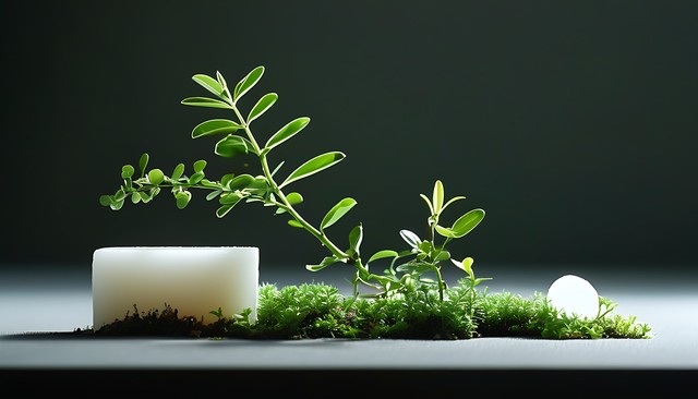 一片绿色植物与一小块白色物体相对比的自然场景,展现大自然的和谐美感。