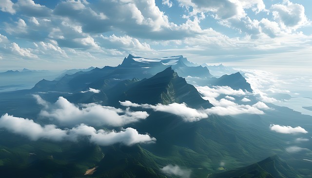 一片辽阔的自然风光,山脉与云海交相辉映,展现出大自然的宏伟与宁静,仿佛置身于仙境之中。