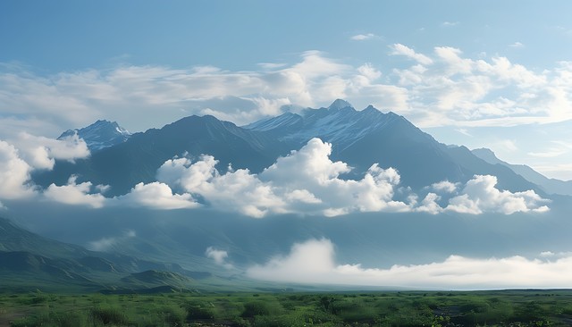 一片辽阔的自然风光,山脉与云海交相辉映,展现出大自然的宏伟与宁静,仿佛置身于仙境之中。
