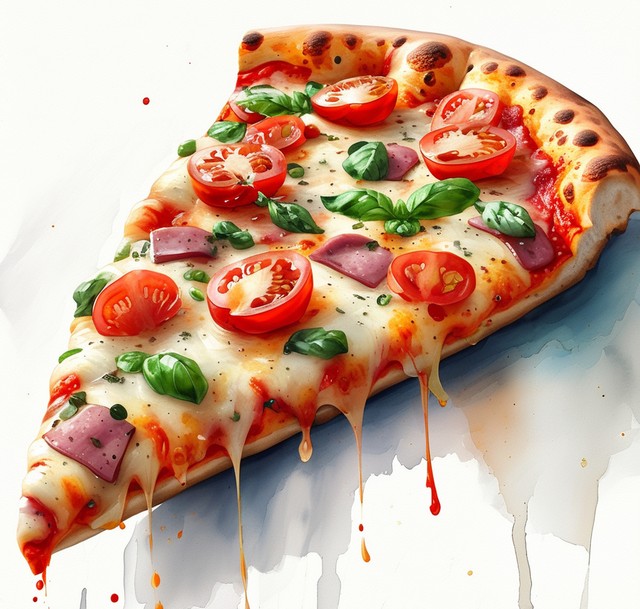 数字技术披萨水彩设计插图