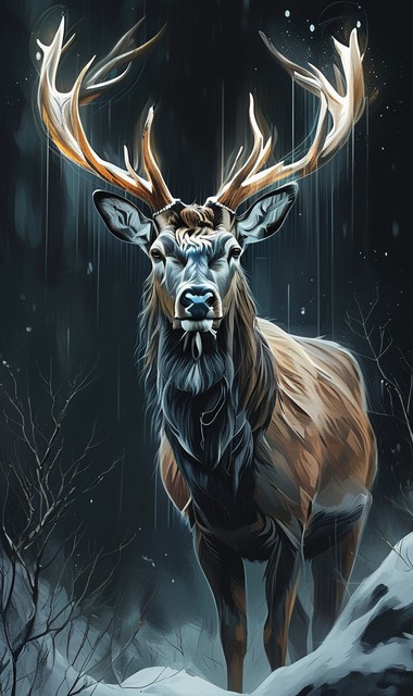 在北歐民艺风格中,以数字生成技术绘制的鹿图像,让您感受到一种原始而神秘的氛围。