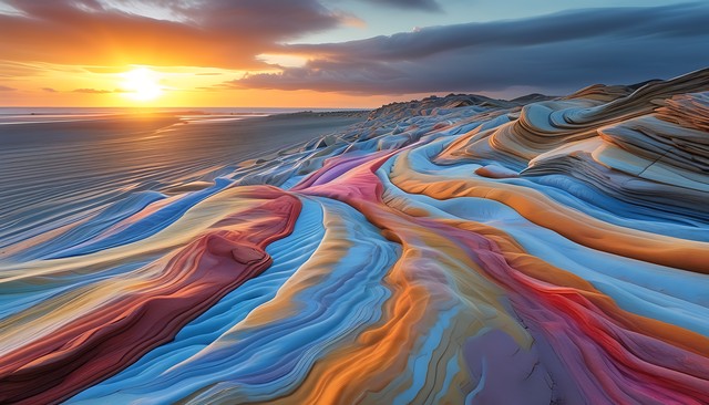 展现自然之美,整齐的石块与细腻的沙子相互交织,色彩丰富,纹理独特,仿佛是在诉说大自然的故事。