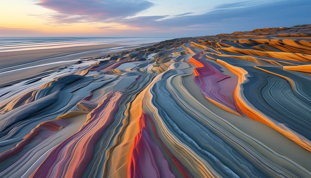 展现自然之美,整齐的石块与细腻的沙子相互交织,色彩丰富,纹理独特,仿佛是在诉说大自然的故事。