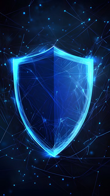 安全盾抽象霓虹灯3d插图。多边形光栅的业务理念安全