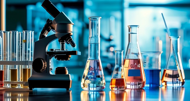 玻璃器皿仪器和显微镜的实验室研究背景
