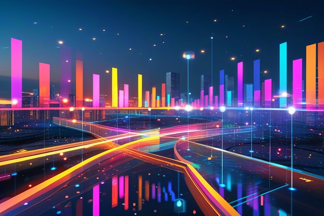 现代创意的网络节点在智慧城市中互联,在5G和无线技术的先进数字连接中