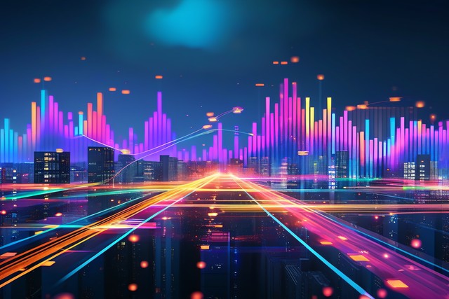 现代创意的网络节点在智慧城市中互联,在5G和无线技术的先进数字连接中