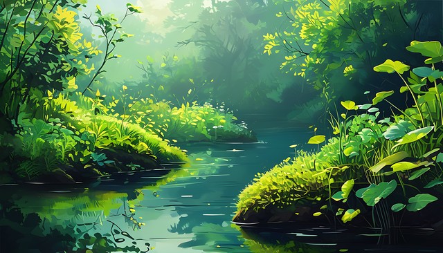 一片深绿色的自然景观,体现了生机勃勃的植物与自然的和谐,营造出宁静的氛围。