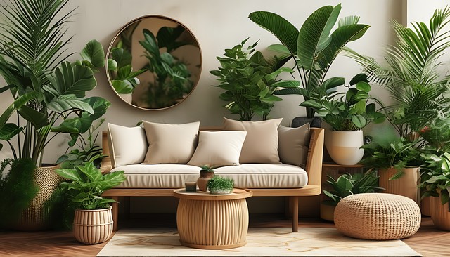 室内环境中的一组植物摆设,融合现代家具与自然元素,营造出温馨舒适的氛围。