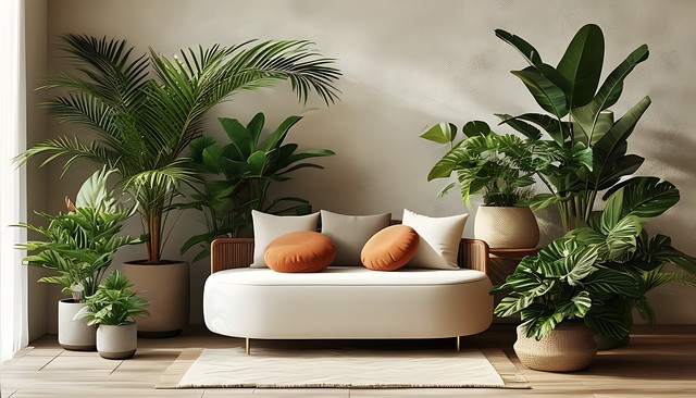 室内环境中的一组植物摆设,融合现代家具与自然元素,营造出温馨舒适的氛围。