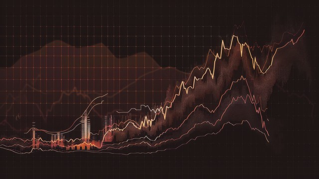 摘要 数字显示器上的商业财务图表插图,显示市场数据和股票信息。Wave Pattern 技术概念