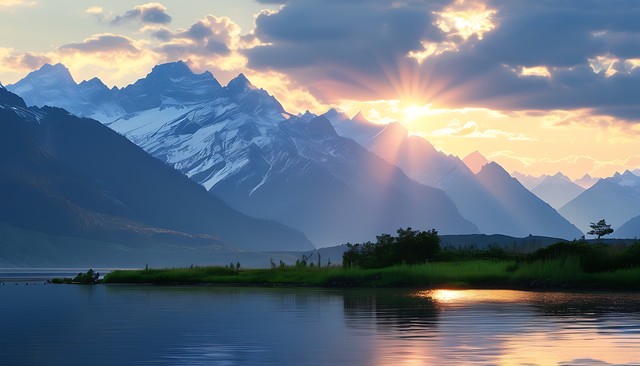 壮丽的山脉在阳光下闪耀,宁静的天空与大自然的和谐交融,展现出美丽的自然景观