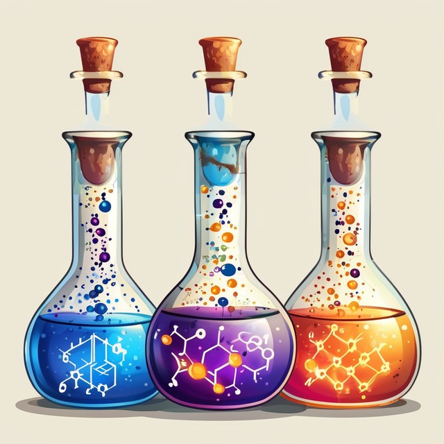 试管矢量图,化学实验烧瓶。炼金术烧瓶,魔法饮料。一套用于设计魔法仪式的烧瓶。