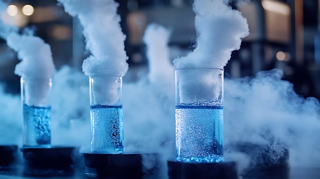 液氧在不同容器内挥发,探索气体状态的神秘变化。