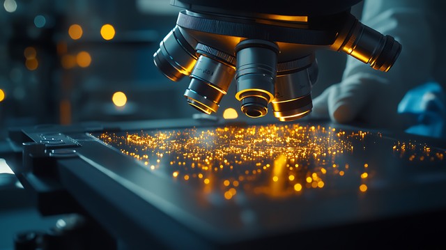 精细的显微镜图像在显示屏上放大,科学家沉浸在微观研究中。