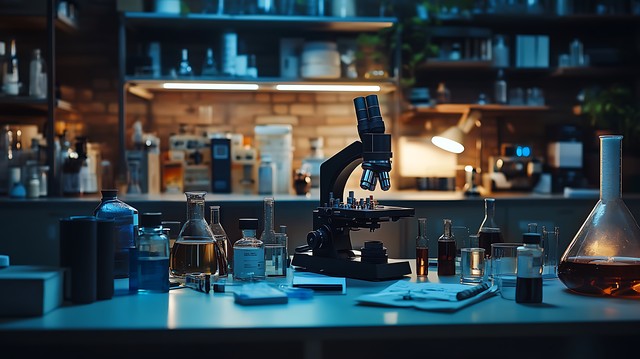 透镜在科学实验中和各种设备并排,传达探索未知的决心。