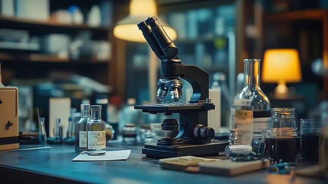 细腻的显微镜在实验室的工作台上,与样本一起静静等待观察。