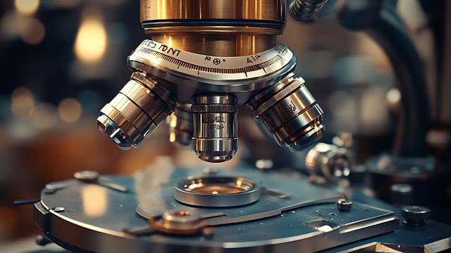 现代显微镜展现出的细致图像,与古老手工显微镜形成鲜明对比。