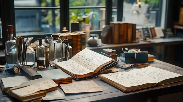 书桌上散落的笔记与书本,记录着思路的激荡与灵感的碰撞。