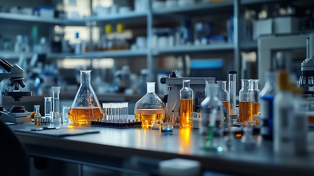 精密的测量仪器放置在实验室的工作台上,周围环绕着各种科学工具和试剂。