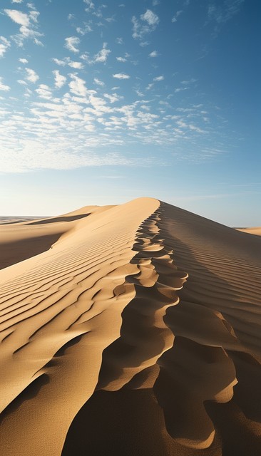 沙漠沙丘的广角镜头、广阔晴朗的天空