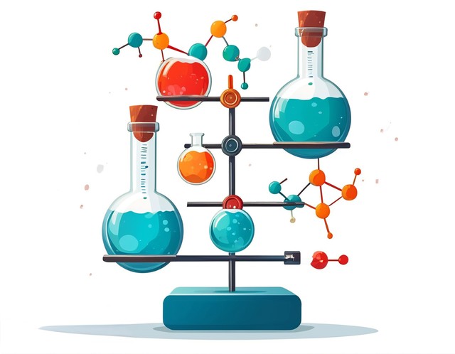反应中的化学平衡状态。时间浓度图。矢量插图孤立在白色背景。