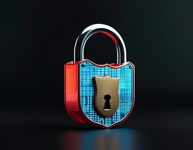 黑色背景上带有虚拟屏幕的数字挂锁。用于防止欺诈和隐私数据网络保护概念的网络安全技术