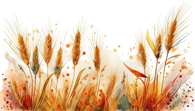 秋天小麦的抽象矢量水彩插图。手绘自然设计元素孤立在白色背景。